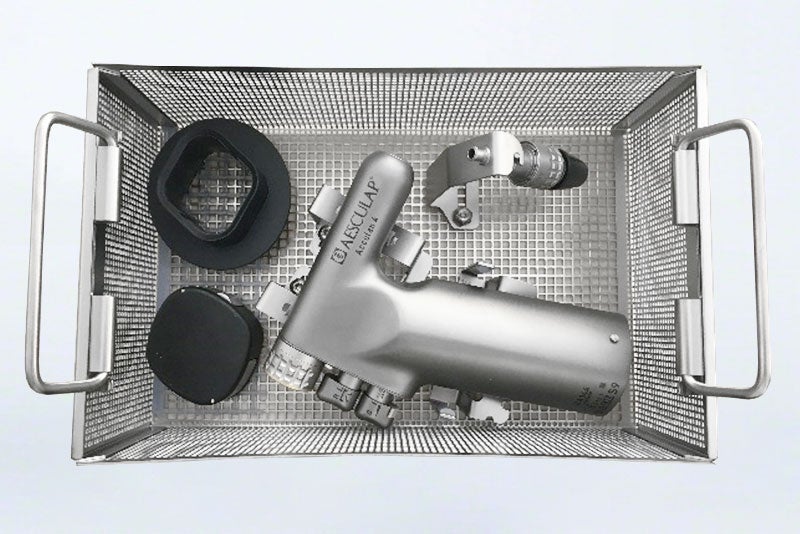 - Kompatibel zu den gängigen Fräs- und Bohrwerkzeugen durch Aufsätze für AO klein, AO-groß, Dental, Zimmer und Hudson